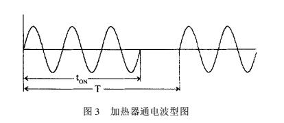 態(tài)繼電器的開通與市電同步 ,即在電網(wǎng)電壓的零點(diǎn)開通以避免對(duì)電網(wǎng)的干擾 ,并提高可靠性。加熱器通電波形如圖 3 所示。