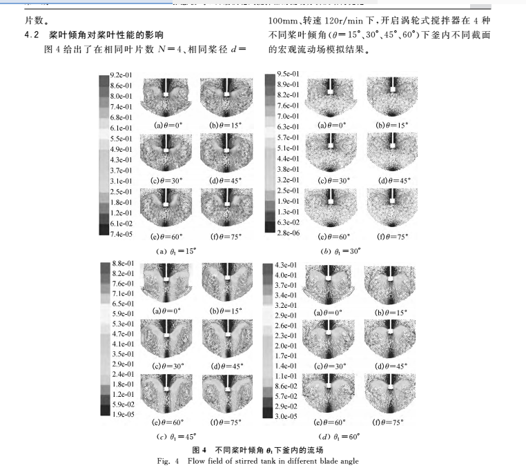 果,考慮到釜內(nèi)有4個擋板,故每種葉片數(shù)下表達(dá)釜內(nèi) |