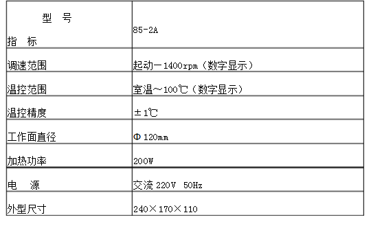 二、85-2A數顯恒溫磁力拌和器的技術指標: